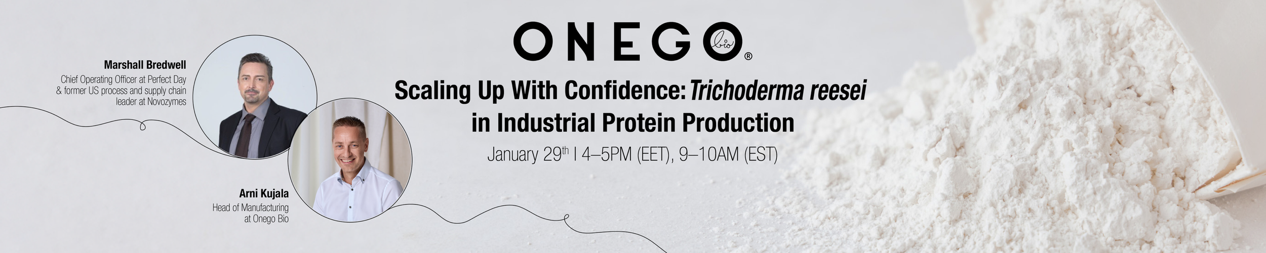 In this second session, “Scaling Up With Confidence: Trichoderma reesei in Industrial Protein Production,” biotech manufacturing leaders Dr. Marshall Bredwell, Chief Operating Officer at Perfect Day, and Arni Kujala, Head of Manufacturing at Onego Bio, examine: