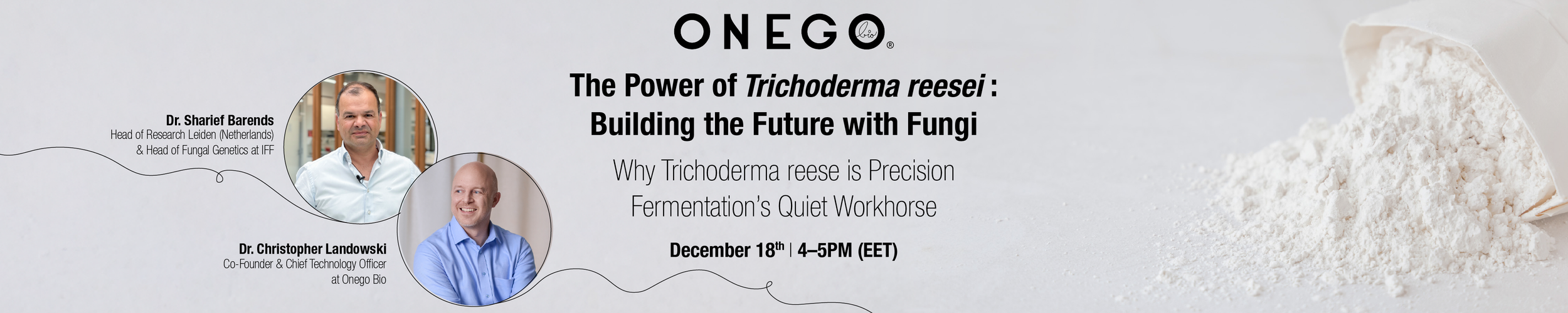 In this first session, “Why Trichoderma reesei is Precision Fermentation’s Quiet Workhorse,” industry experts Dr. Sharief Barends, Head of Research Leiden and Head of Fungal Genetics at IFF, and Dr. Christopher Landowski, Co-Founder and Chief Technology Officer at Onego Bio, discuss: